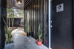 Bright and serene, The Hawk’s Nest is one of four airy, nature-inspired tiny cabins nestled together at the edge of the woods in Alvord, Texas — a peaceful retreat for two. This is a PET FRIENDLY unit!